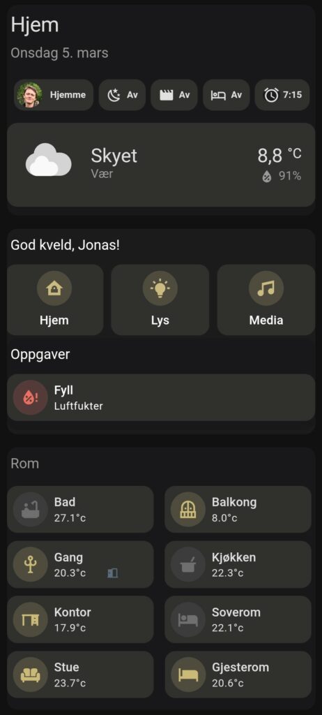 I tillegg til automasjoner tilbyr Home Assistant markedets mest fleksible løsning for konfigurasjon av dashboards, slik at du til en hver tid kan holde oversikt over alle enhetene dine og styre de via mobil, nettbrett eller PC.